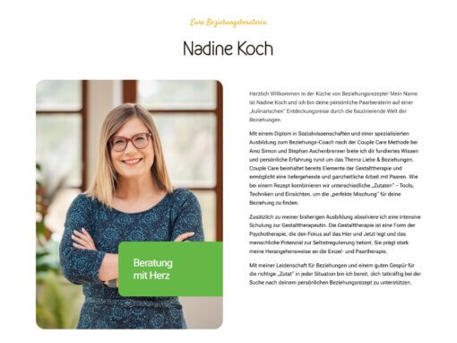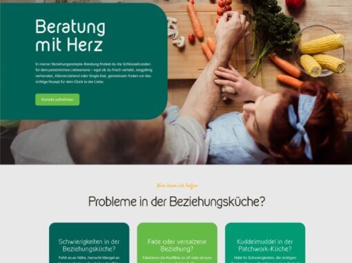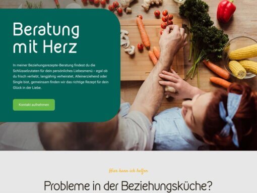 Neuer Webauftritt für BeziehungsRezepte – Koch-Metapher und grüne Akzente, Leitfaden-gestützte Texte, WordPress mit SEO & Performance – für eine klar strukturierte, ausbaufähige Präsenz